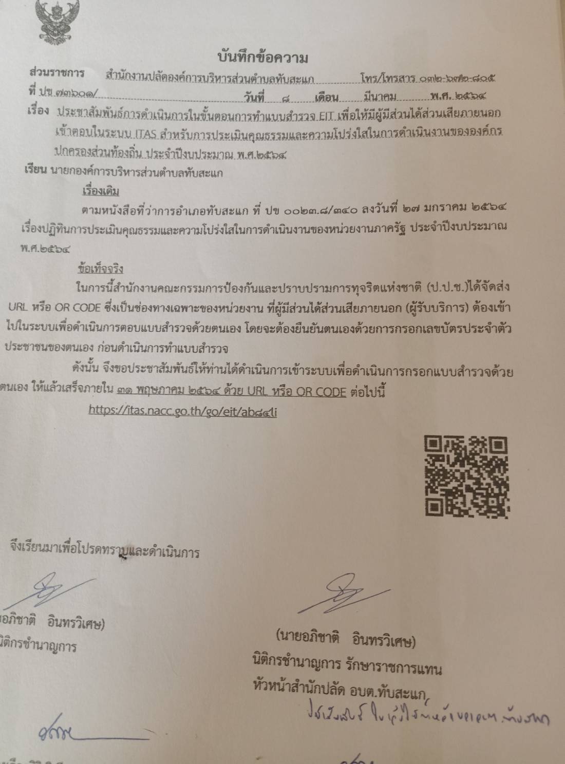 องค์การบริหารส่วนตำบลทับสะแก อำเภอทับสะแก จังหวัดประจวบคีรีขันธ์ โทร. 0-3267-2805