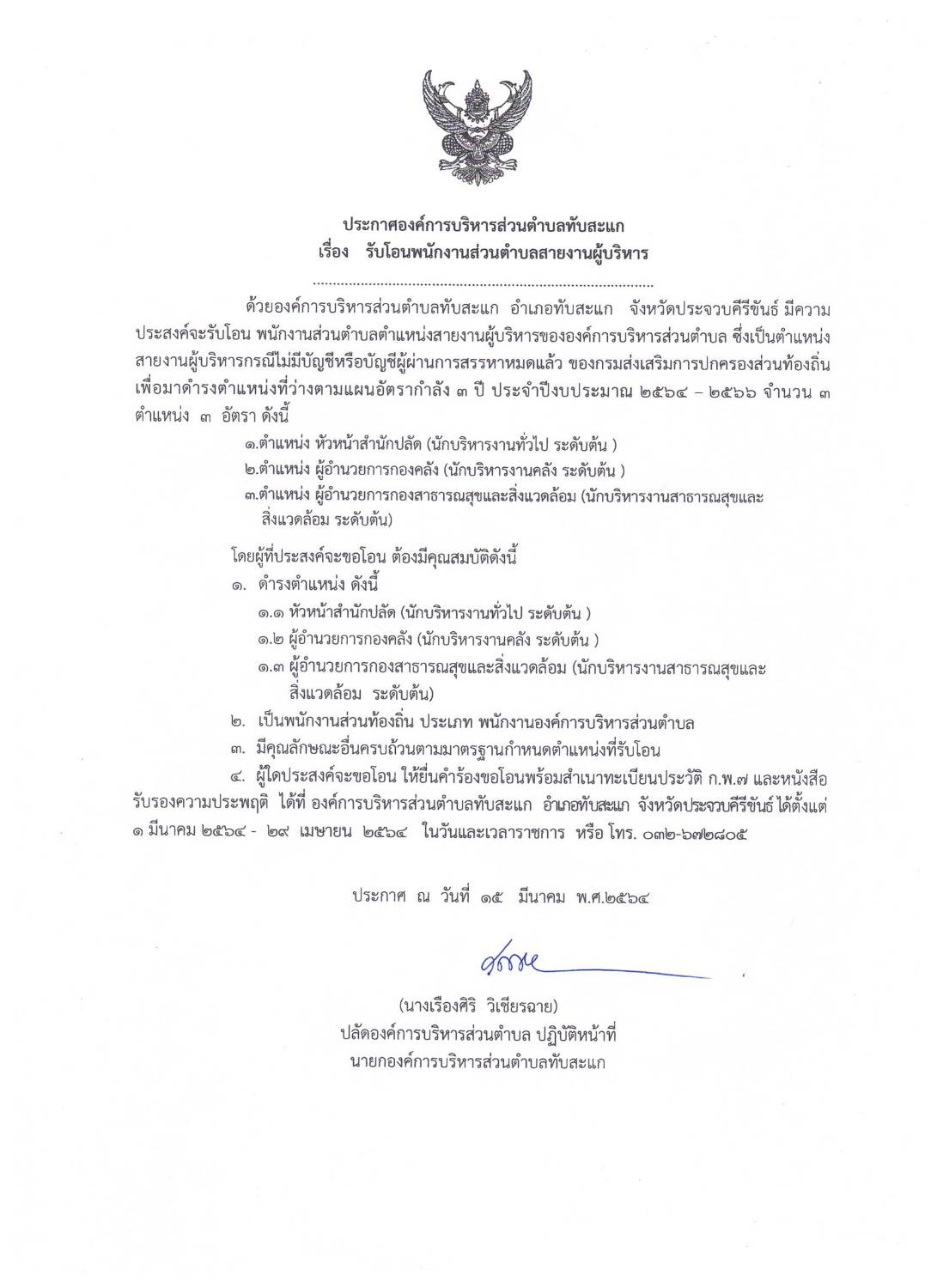 องค์การบริหารส่วนตำบลทับสะแก อำเภอทับสะแก จังหวัดประจวบคีรีขันธ์ โทร. 0-3267-2805
